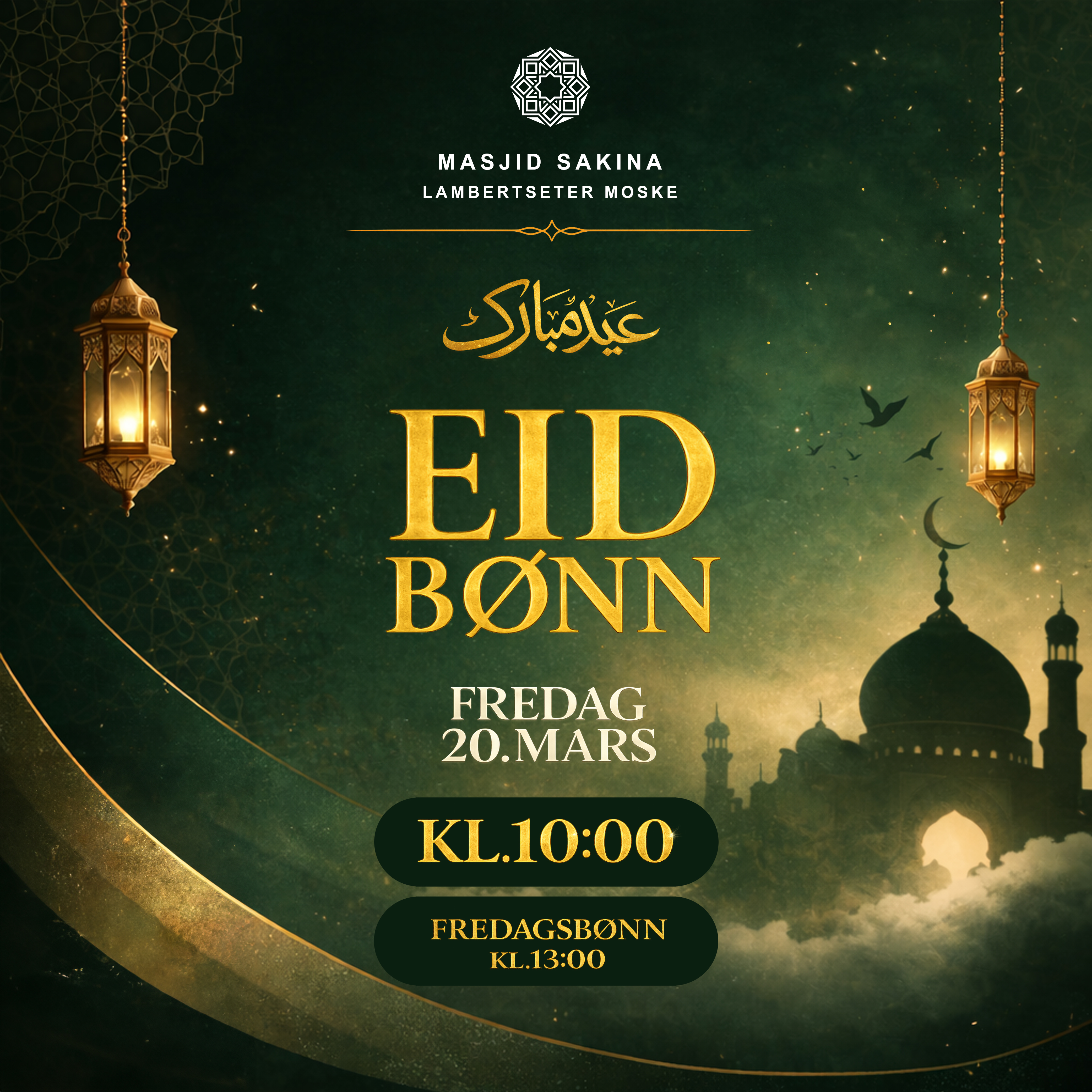 Vi har gleden av å invitere til Eid-bønn i Masjid Sakina.